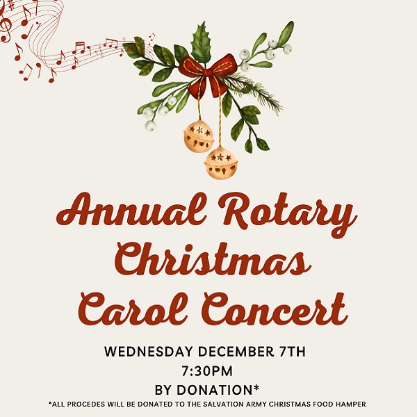 Rotary Club of Trail presents Rotary Carol Fest! Wednesday December 7, 2022 at 7:30 PM at The Bailey Theatre Admission by Donation at the Door...