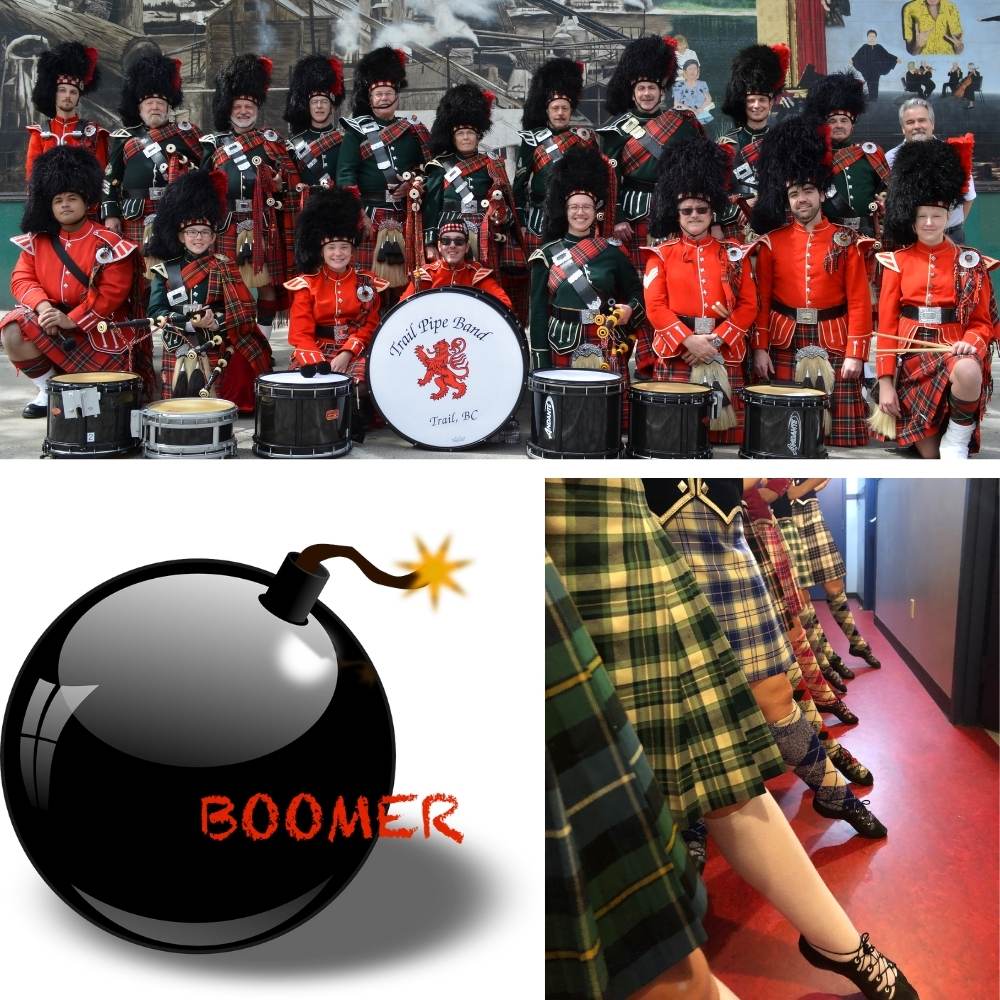 Tonight, Music in the Park kicks off from 6:15 pm to 8 pm in Gyro Park in Trail with the local band BOOMER. The Trail Pipe Band then plays with the Scotties School of Highland Dance. Entry by suggested donation of $3. Or support us by buying a season pass for $50.