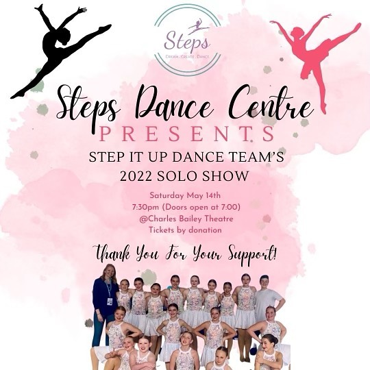 STEPS Dance Centre presents Stairway to Entertainment 2022 Saturday May 28th at 1 pm and 6 pm Reserved Seating. Masks are recommended but not mandatory....