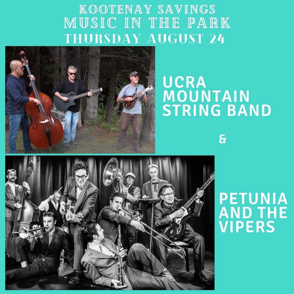 Trail and District Arts Council presents Kootenay Savings Music in the Park Petunia and The Vipers with opening act UCRA Mountain String Band Thursday August...